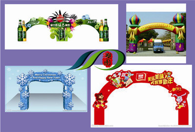充氣拱門(mén):主要適用于各行各業(yè)大型室外活動(dòng)、慶典、剪彩等。陜西帳篷分享充氣拱門(mén)一般采用優(yōu)質(zhì)PU材料,近年來(lái)也推出針對(duì)性的pvc材料。但牛津布材質(zhì)的拱門(mén)最常用。耐磨、耐用、耐曲折、柔軟度好、抗拉強(qiáng)度大。拱門(mén)指氣球上端呈弧形狀的一個(gè)跨度門(mén)。拱門(mén)有多種多樣:雙龍拱門(mén)、龍鳳拱門(mén)、單拱門(mén)、雙拱門(mén)、連排拱門(mén)、造形定性拱門(mén)等。尺寸:6米--18米不等。
