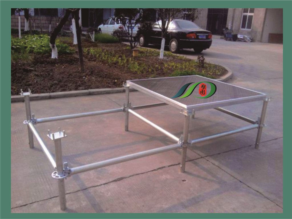 舞臺規(guī)格有1.22*1.22/米及1.22*2.44/米,拼接舞臺根據(jù)舞臺整體的尺寸每一塊舞臺間的銜接與拼接時需要共用支架腿套用組合,這樣舞臺才可牢固、堅實。