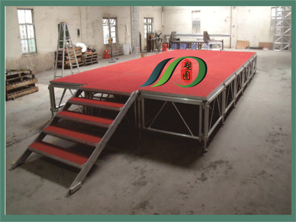 舞臺(tái)規(guī)格有1.22*1.22/米及1.22*2.44/米,拼接舞臺(tái)根據(jù)舞臺(tái)整體的尺寸每一塊舞臺(tái)間的銜接與拼接時(shí)需要共用支架腿套用組合,這樣舞臺(tái)才可牢固、堅(jiān)實(shí)。